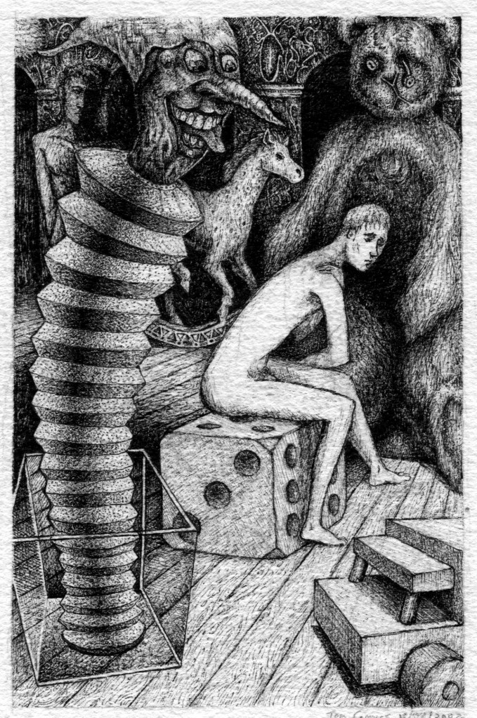 Many of these pen drawings date from my school days. I tried to get into Art School with them but wasn’t accepted into any. I also tried to get illustration work but was also unsuccessful. But that said, enjoy!